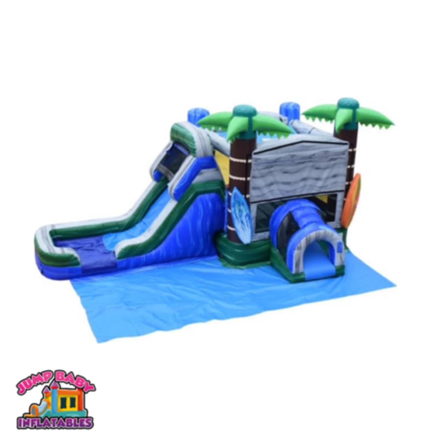 Take a look at the Surfs Up Combo! This combo features a bounce area with basketball hoop, climbing wall and a single lane slide. This combo is sure to be a hit at all of the parties in Walker and Denham Springs.
