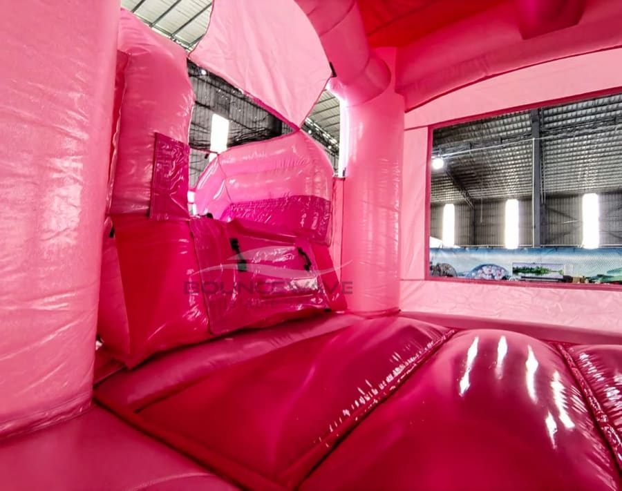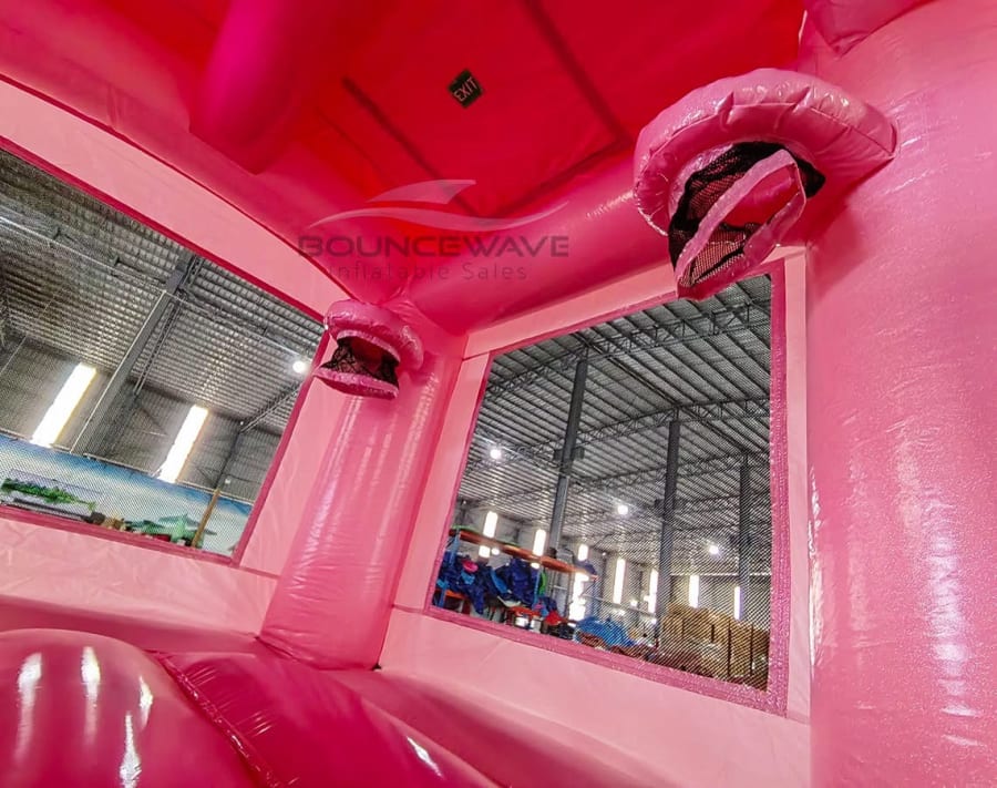 Take a look at the awesome Glitter and Bow combo! This combo features a large bounce area, two basketball hoops, a climbing wall and a slide into an inflatable landing pad. Whenever you are looking for a bounce house in Denham Springs, Walker, or Watson look no further than Jump Baby Inflatables.
