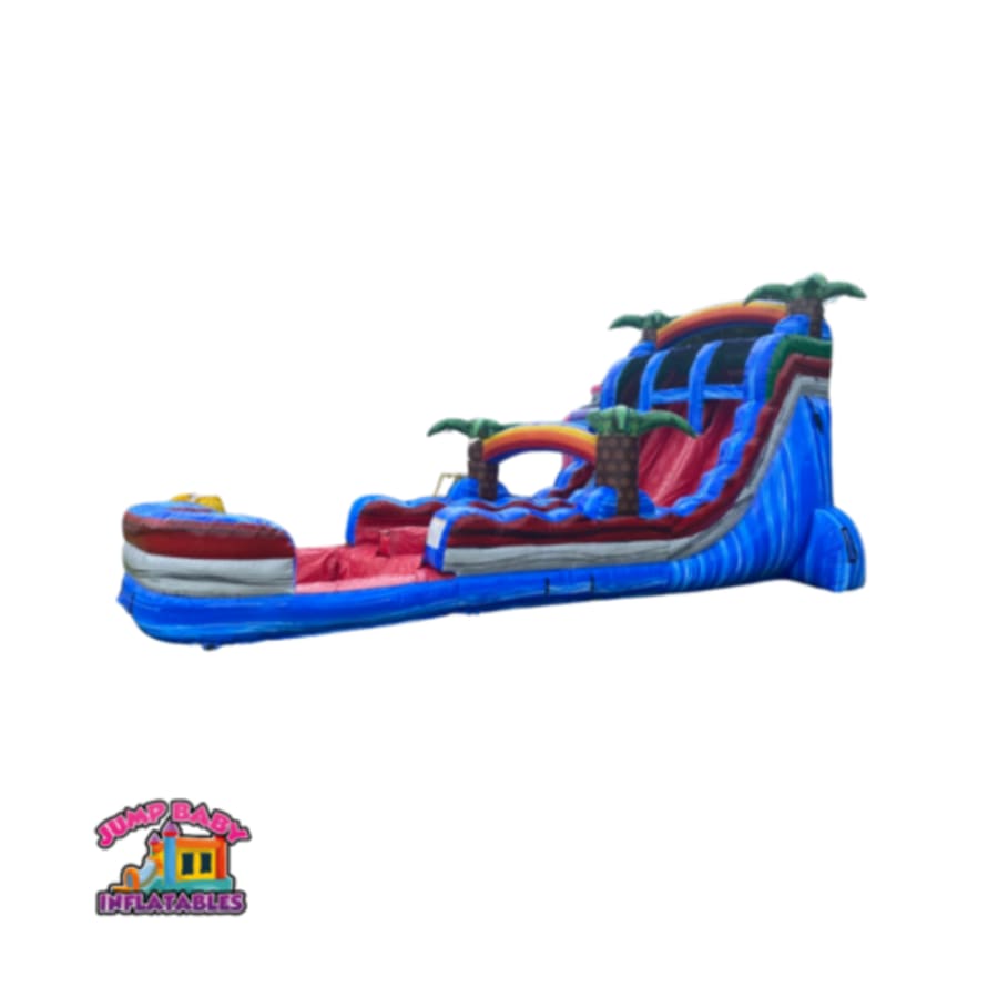This unique slide is fast and fun! It has two lanes, a huge pool, a 55 degree slide build. This slide is fast, so fast that a slip and slide had to built into it. This is one of the fastest water slides for rent in Denham Springs, Walker, and Baton Rouge.